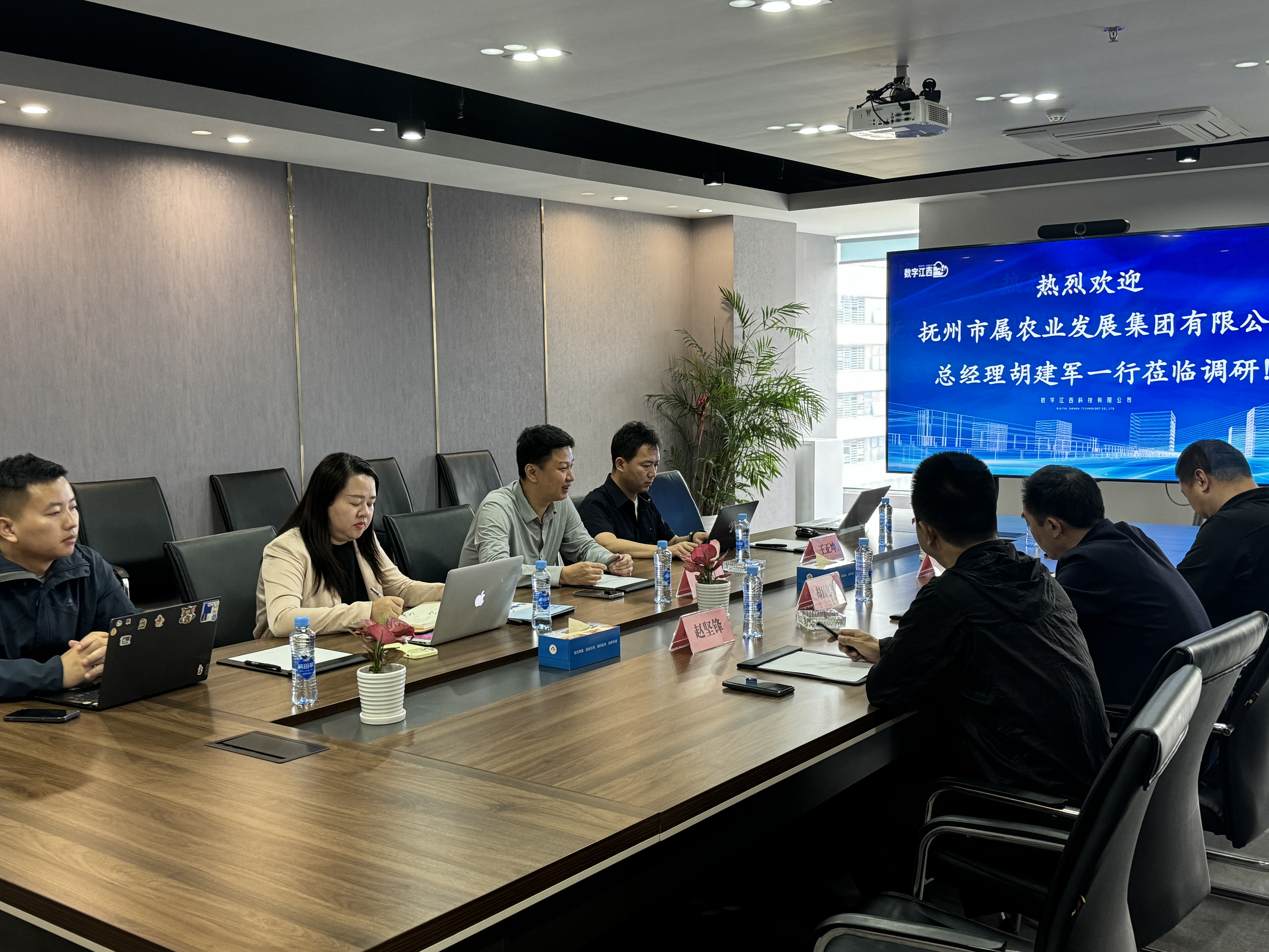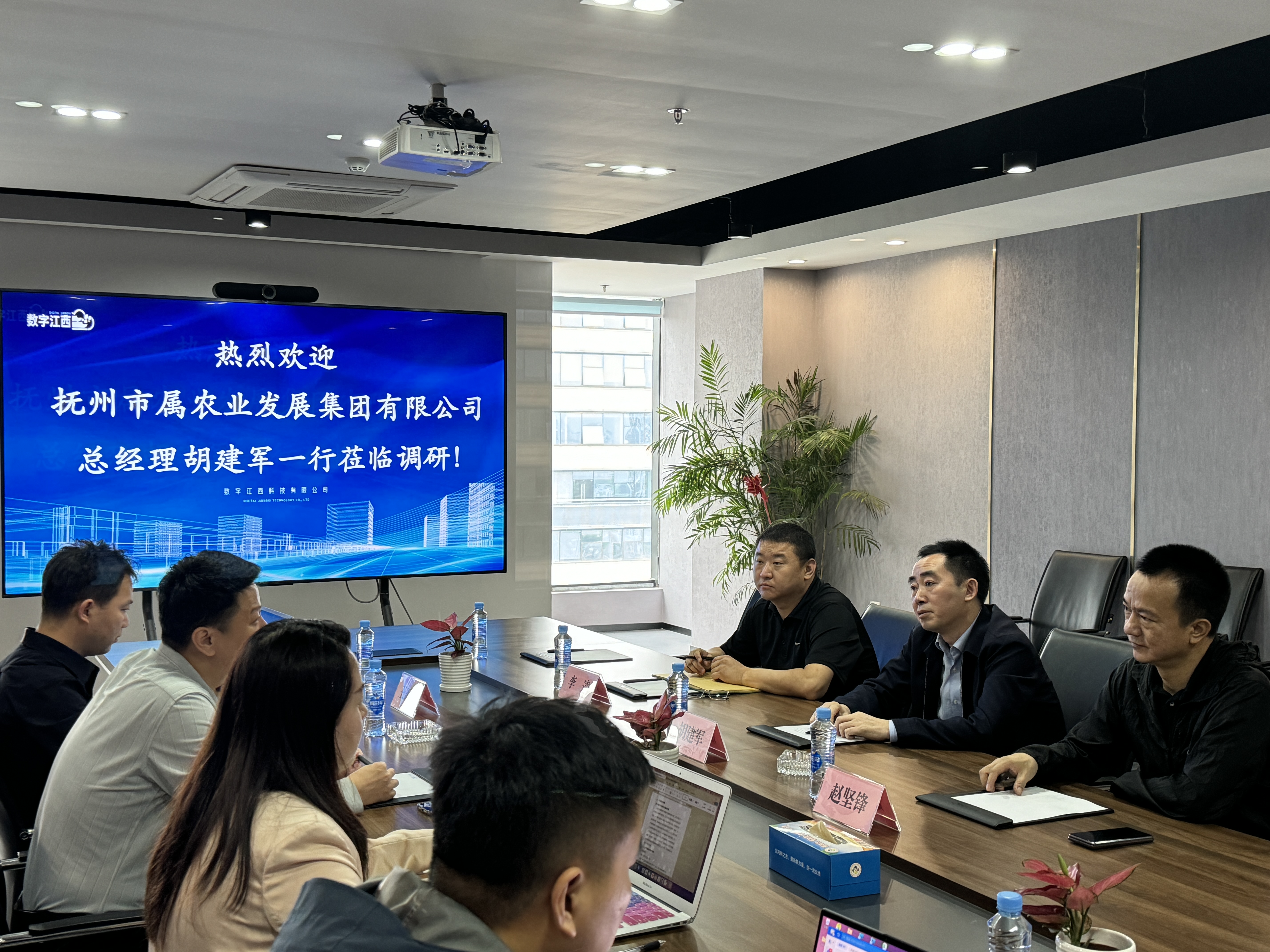 近日,市農(nóng)發(fā)集團(tuán)總經(jīng)理胡建軍率隊(duì)赴數(shù)字江西科技信息有限公司調(diào)研。數(shù)字江西科技信息有限公司總經(jīng)理馮晶晶、運(yùn)營總監(jiān)王正坤、金融業(yè)務(wù)負(fù)責(zé)人阮建成參加座談。
