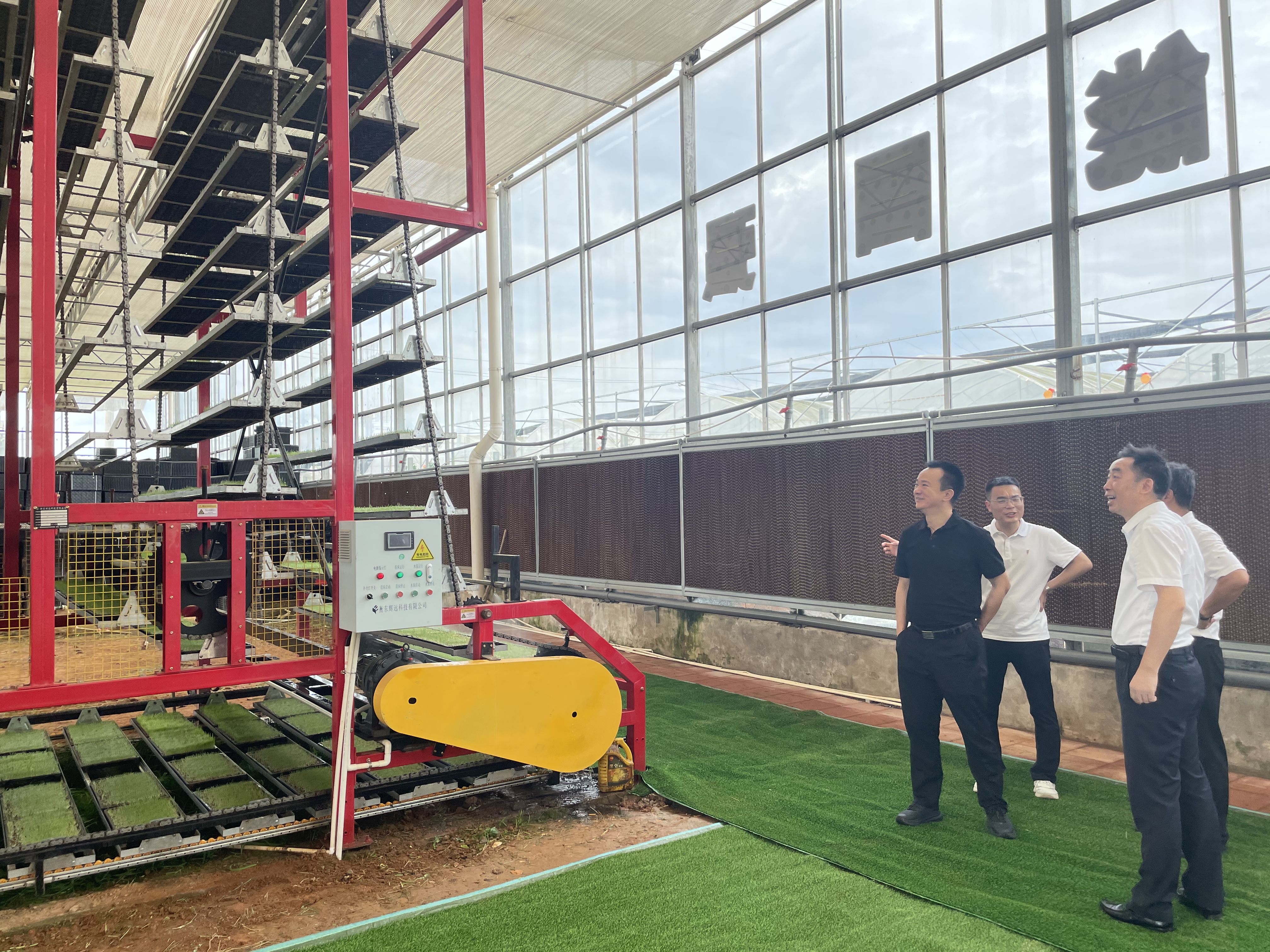 眼下正值夏收夏種“雙搶”季節(jié),市農(nóng)發(fā)集團公司與市農(nóng)科所在東臨新區(qū)湖南鄉(xiāng)鵬溪現(xiàn)代農(nóng)業(yè)科技園合作的現(xiàn)代工廠育秧中心,目前正火熱進行夏耕服務(wù)工作。集團公司黨委副書記、總經(jīng)理胡建軍多次現(xiàn)場查看育秧工作。